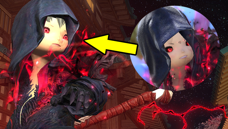 これまでは、自キャラがフード装着前と